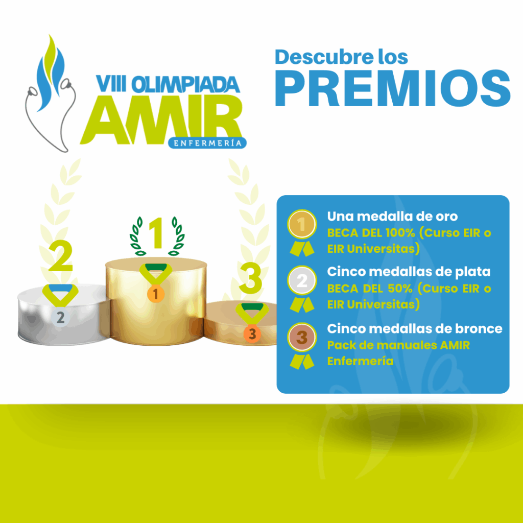 Desde AMIR Enfermería estamos felices de poder presentaros la VIII Olimpiada EIR. Mediante una prueba competitiva online en tiempo real ofreceremos a los estudiantes de enfermería la posibilidad de obtener premios y becas para su desarrollo.